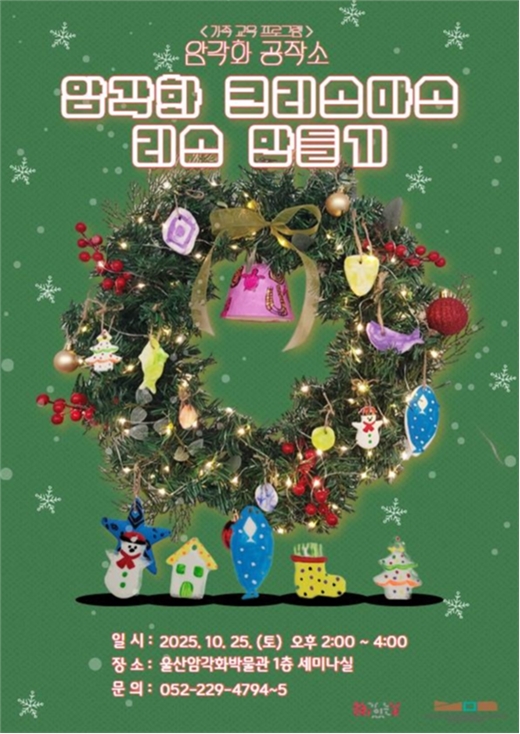 울산암각화박물관은 매월 마지막 주 토요일 가족 대상 교육프로그램 ‘암각화 공작소’를 운영한다.이 프로그램은 ‘반구천의 암각화’ 유산을 이해하고 분기별로 주제에 따라 암각화와 관련된 체험을 할 수 있는 교육이다. 올해 4분기에는 반구천의 암각화 그림을 관찰하고, 이를 활용해 장식품(오너먼트)을 제작해 크리스마스 리스를 꾸