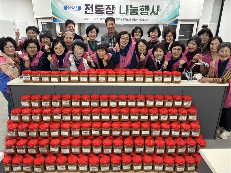 울산시농업기술센터는 한국생활개선울산광역시연합회와 함께 11월 28일 낮 12시 농업기술센터 정문 앞에서 ‘전통 장 나눔행사’를 개최한다고 밝혔다.이날 행사에는 농업기술센터와 생활개선연합회 관계자 등 20여 명이 참여한다. 생활개선회원들이 지난 27일부터 이날 오전까지 지역 농산물로 직접 담근 된장 300kg이 울산 지역