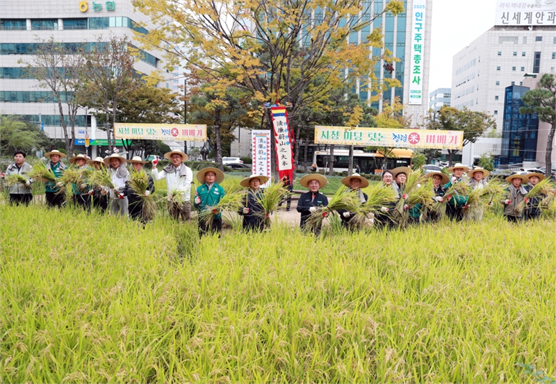 울산시는 21일 오후 1시 50분 시청 생활정원 텃논에서 한 해의 수고를 마무리하고 더 풍성한 울산을 기원하는 벼 베기 행사를 연다고 밝혔다.