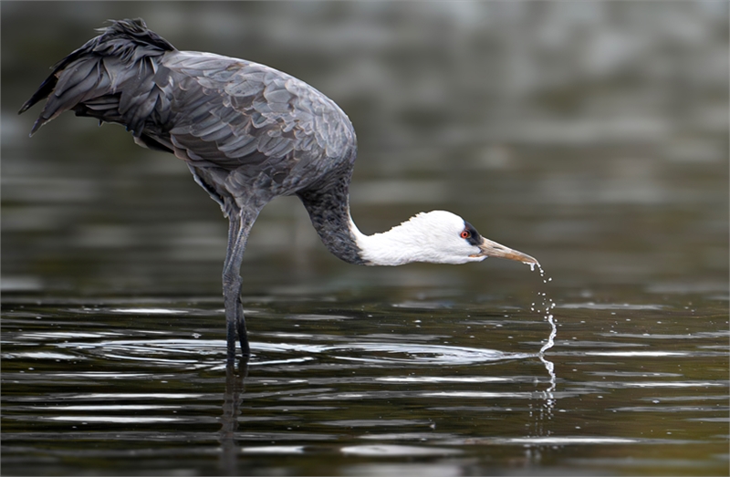 흑두루미는 두루미과로 소형 두루미류다. 이마가 검은색이며 정수리 앞부분에 붉은색 피부가 노출돼 있다. 머리와 목 윗부분은 흰색이며 몸 전체는 회흑색이다.